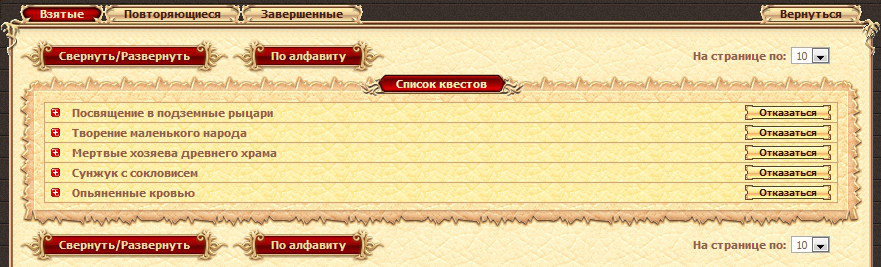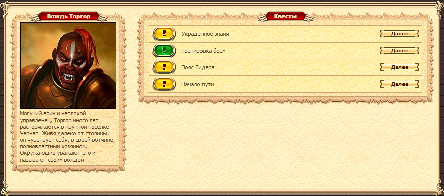 Кликнув на изображение квестового персонажа, вы попадете в раздел, где отображаются все доступные у него задания.